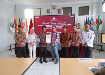 Koordinator Divisi Pencegahan, Partisipasi Masyarakat, dan Hubungan Masyarakat Bawaslu Kabupaten Rembang, Muhammad Bayanul Lail, S.Pd.I., melakukan pengawasan Rapat Pleno Pemutakhiran Data Pemilih Berkelanjutan (PDPB) yang diselenggarakan oleh KPU Rembang