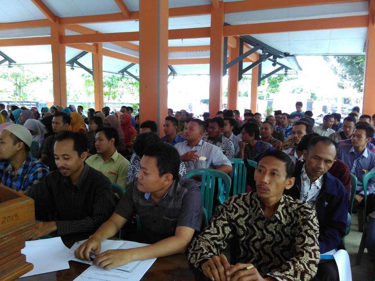 Para pengawas TPS mengikuti bimbingan teknis pemetaan TPS rawan di Kecamatan Rembang, Minggu (10/6/18)[/caption]